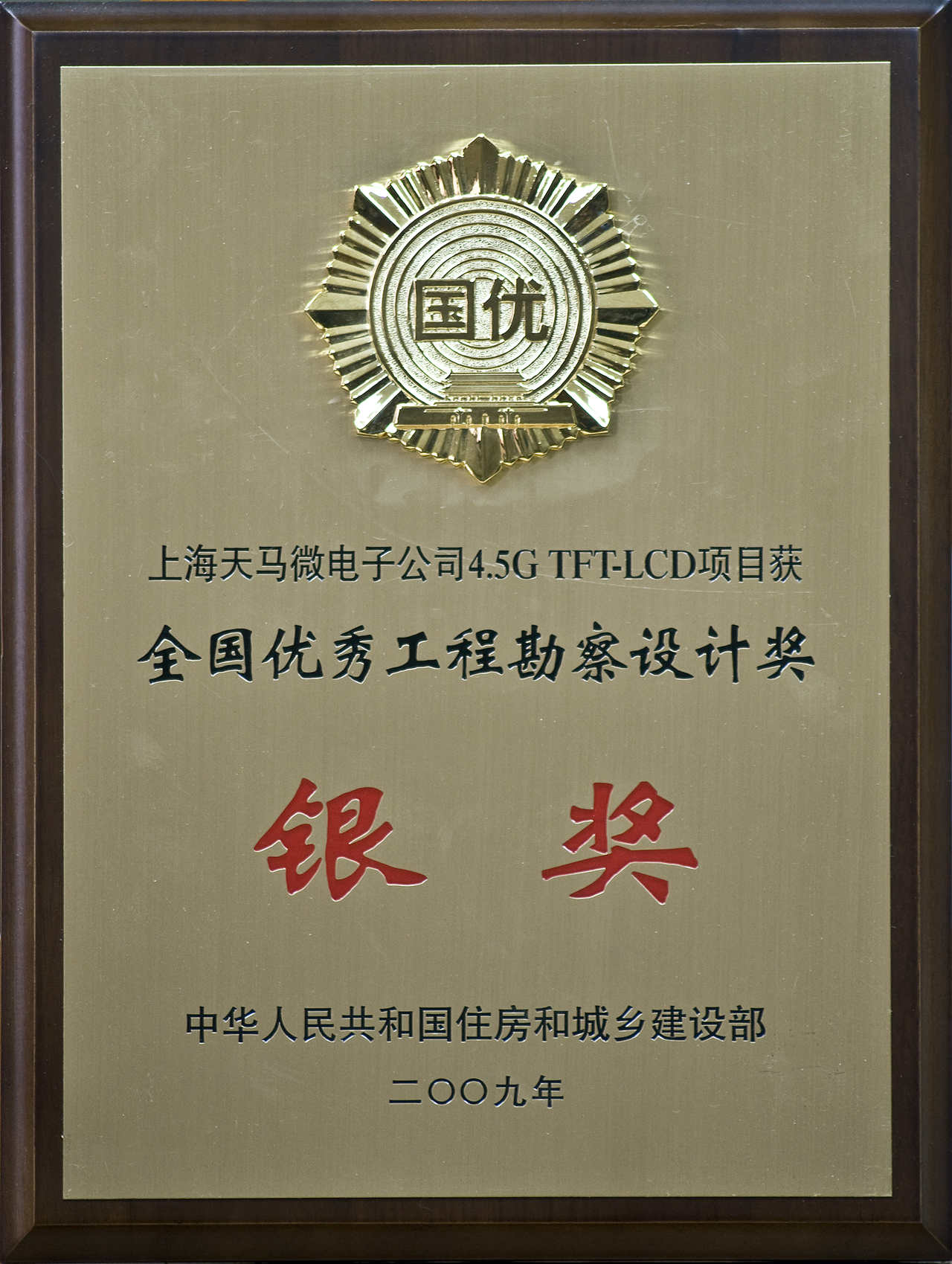 2009世源科技上海天馬微電子4.5TFT-LCD全國優秀工程勘察設計銀獎獎牌-住建部