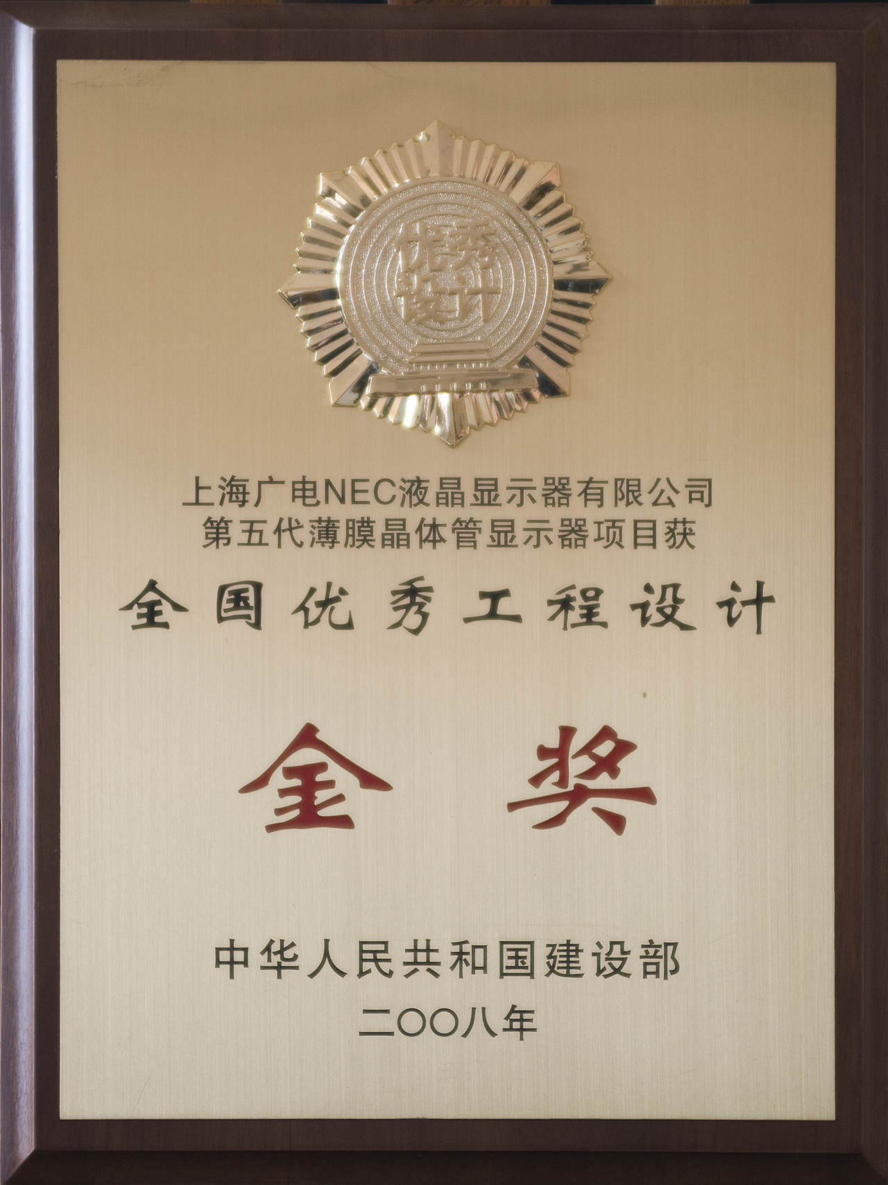 全國優秀工程設計獎金獎上海廣電NEC液晶顯示器有限公司第五代薄膜晶體管顯示器項目-2008