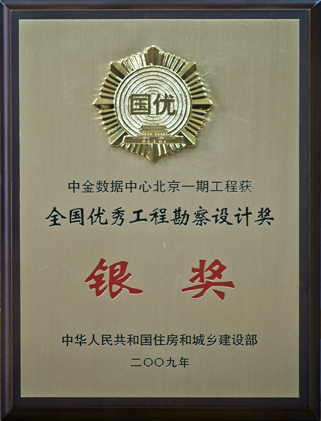 世源科技中金數據北京一期2008年度全國優秀工程勘察設計銀獎獎牌-住建部