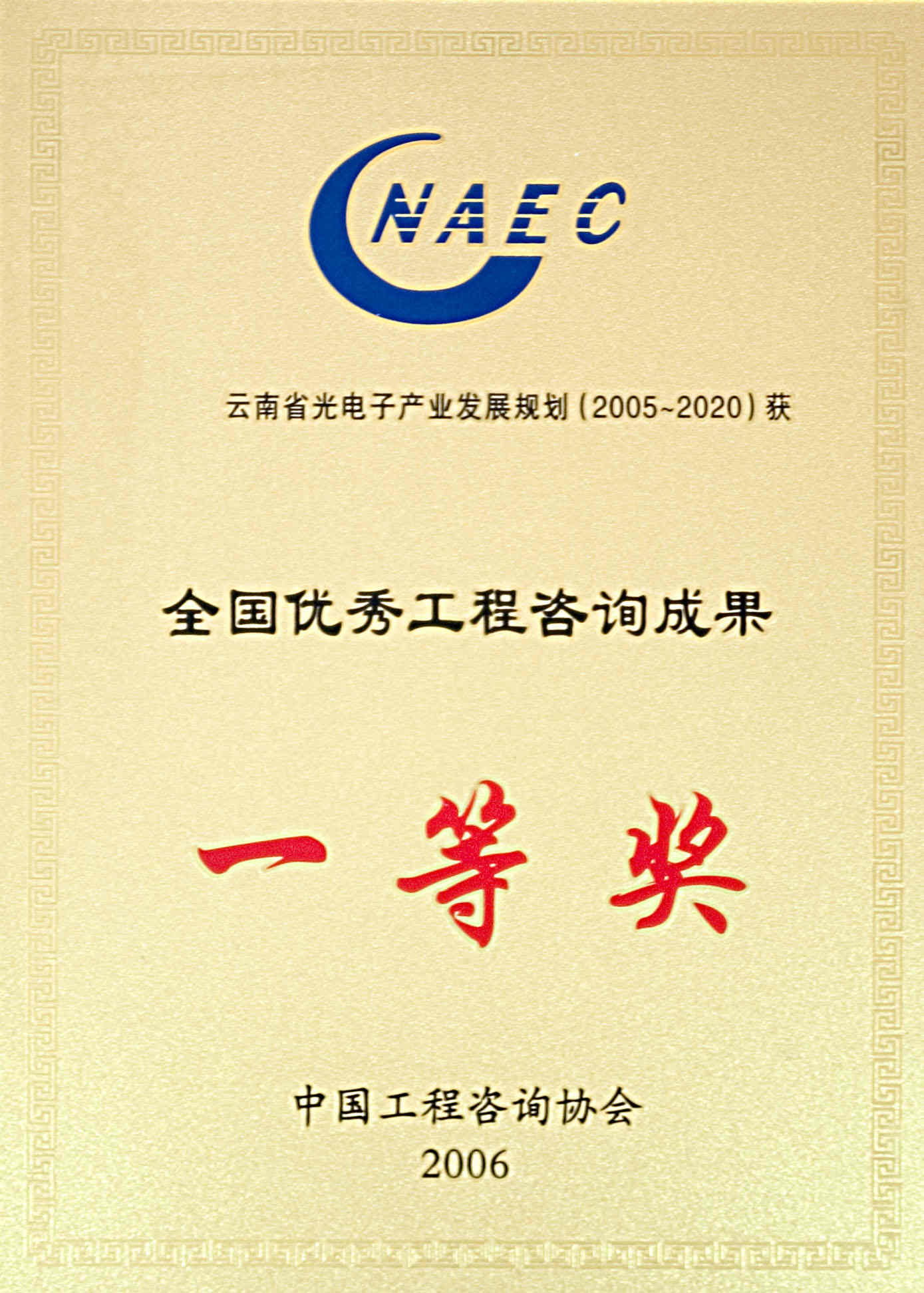 云南省光電子產業發展規劃06年度一等獎獎牌-2006