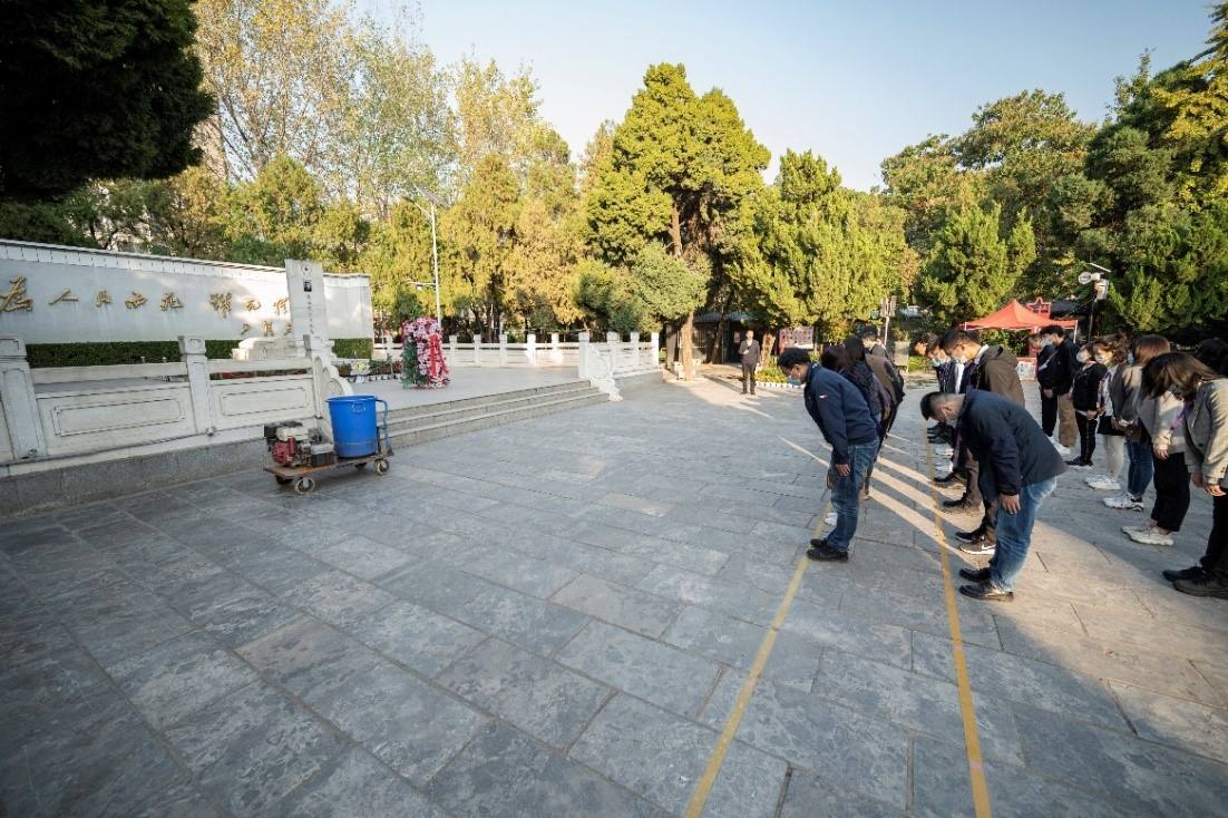 在焦(jiao)裕(yu)(yu)祿烈士紀念園,全(quan)體學員懷著無比崇敬(jing)(jing)的心情向(xiang)焦(jiao)裕(yu)(yu)祿塑像敬(jing)(jing)獻花籃并鞠躬致(zhi)敬(jing)(jing)。