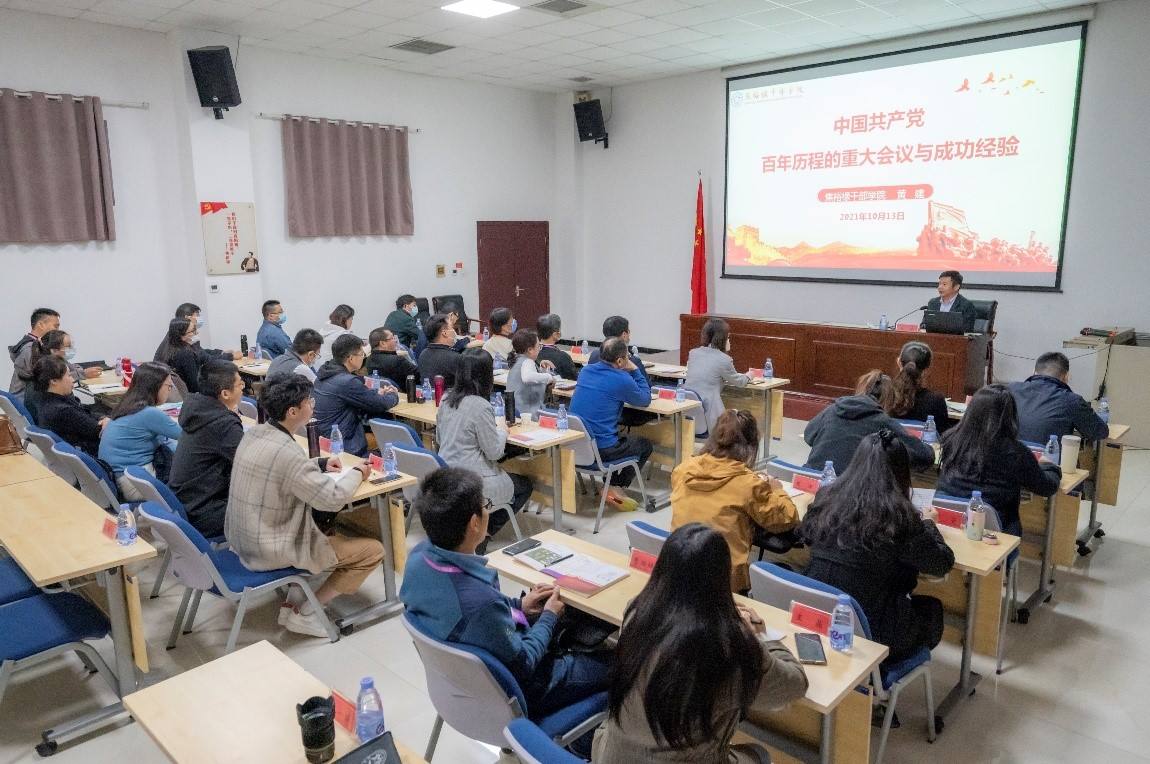 專題教學方(fang)面(mian),邀請了焦裕祿干部學院黃建教授(shou)圍繞《中國(guo)共產(chan)黨百年歷程的重大(da)會議與成功(gong)經驗》進行專題授(shou)課;正是(shi)黨和國(guo)家事業發展緊(jin)要時刻、轉折(zhe)關(guan)頭(tou)召開的重要會議,鋪就了黨從(cong)昨天走到今天、從(cong)今天走向(xiang)未(wei)來的光明(ming)征程。
