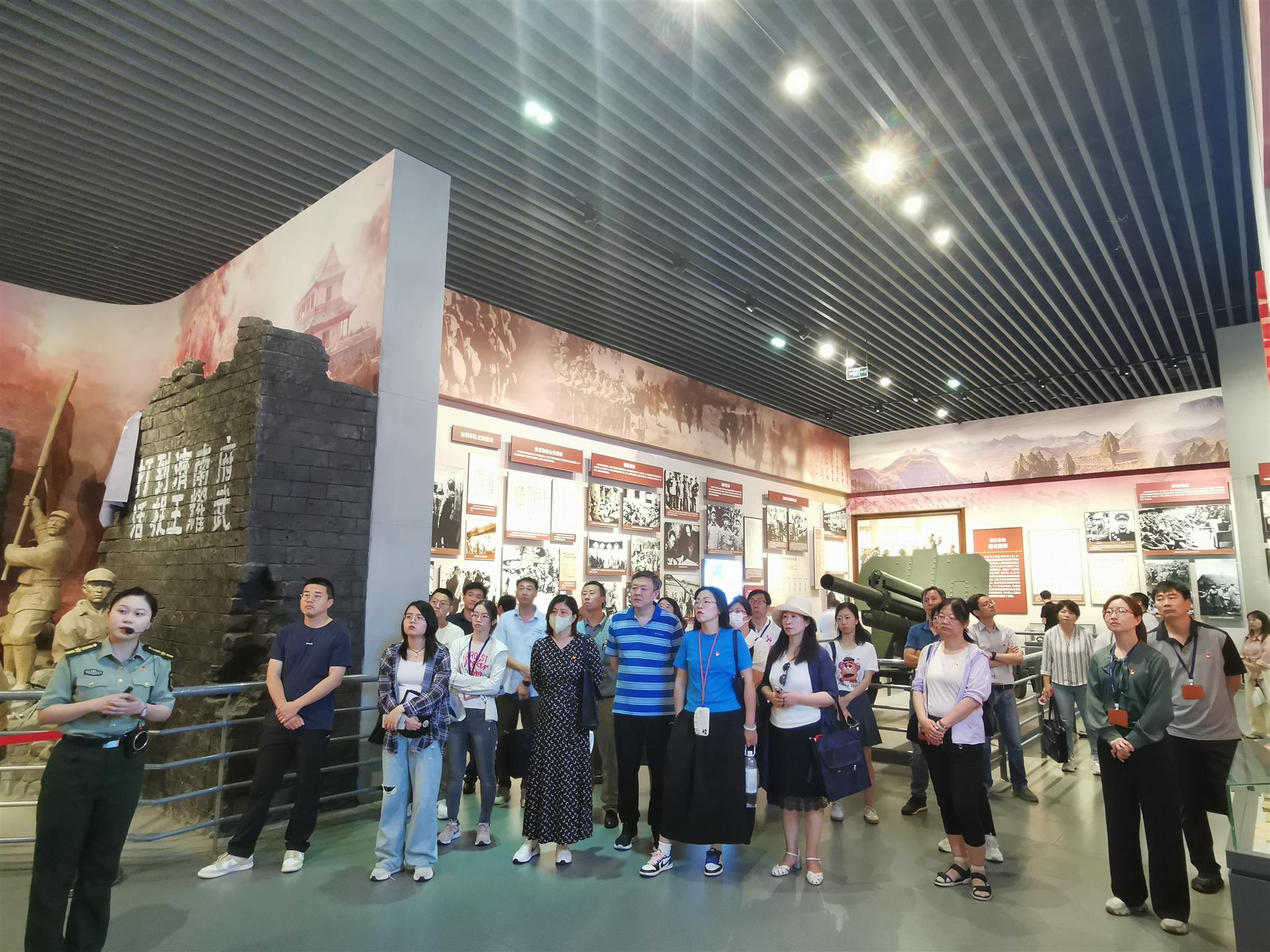 革命(ming)戰(zhan)爭(zheng)年代,沂(yi)蒙(meng)山區420萬人(ren),20萬人(ren)參(can)軍(jun)入(ru)伍,120萬人(ren)參(can)戰(zhan)支前,10萬先(xian)烈(lie)血灑疆場。青山無(wu)(wu)語(yu),豐(feng)碑(bei)永存。英烈(lie)亭(ting)前,中國第一大將(jiang)粟裕將(jiang)軍(jun)的(de)部分骨灰便(bian)撒在(zai)這里,大家懷(huai)著(zhu)無(wu)(wu)比崇(chong)敬(jing)(jing)的(de)心情拾級(ji)而上,脫帽肅立(li),敬(jing)(jing)獻(xian)(xian)花圈,面向(xiang)黨旗,莊嚴宣誓,全(quan)體參(can)訓人(ren)員用鏗鏘有力的(de)誓言表(biao)達著(zhu)對(dui)革命(ming)先(xian)輩的(de)無(wu)(wu)限敬(jing)(jing)仰和深切(qie)緬懷(huai)。隨后,大家參(can)觀(guan)了孟(meng)良崮(gu)戰(zhan)役紀念館,通過(guo)聆聽(ting)講解、觀(guan)看歷史(shi)圖片、參(can)觀(guan)史(shi)料展品(pin),詳細了解了孟(meng)良崮(gu)戰(zhan)役全(quan)過(guo)程(cheng),親身感受到革命(ming)先(xian)輩不怕犧(xi)牲、英勇斗(dou)爭(zheng)的(de)大無(wu)(wu)畏(wei)精神和沂(yi)蒙(meng)人(ren)民愛黨擁(yong)軍(jun)、無(wu)(wu)私奉獻(xian)(xian)的(de)英雄壯舉。